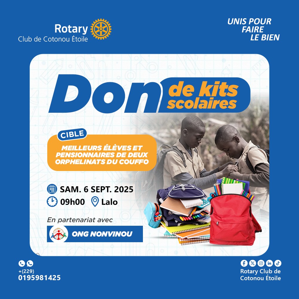 À travers cette initiative, le Rotary Club Cotonou Étoile affirme son engagement envers l’éducation des jeunes et le soutien aux plus vulnérables dans le cadre du mandat 2025 – 2026.